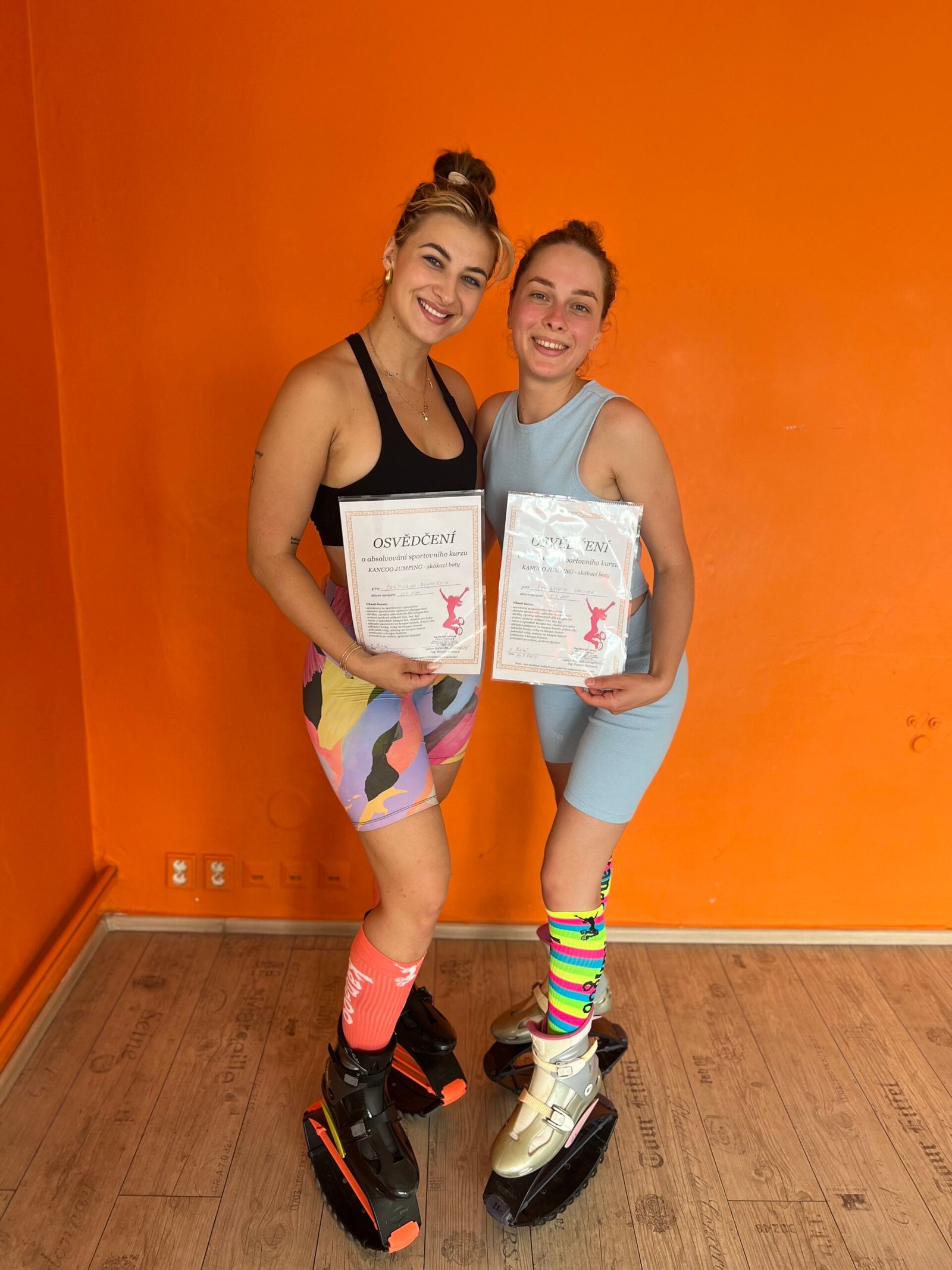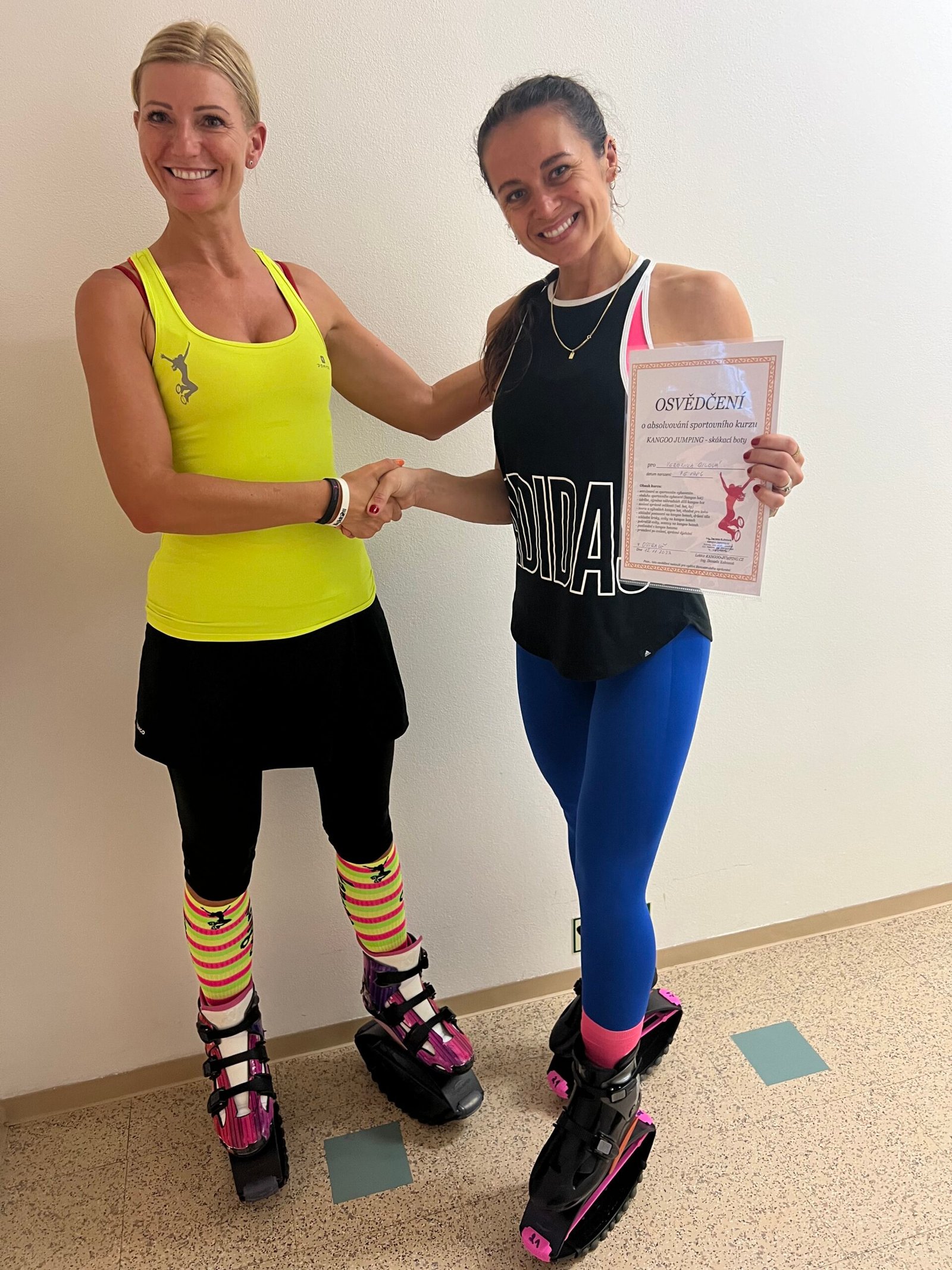 Kontaktujte nás pro přesný termín a více informací, rádi vám vše potřebné vysvětlíme, naučíme jak s botkama zacházet, pro koho jsou vhodné, jak se na nich skáče a posiluje, ukážeme základní kroky a sestavy atd., a poté budete moci pořádat své vlastní lekce na skákacích botkách (toto osvědčení neslouží pro vydání živnostenského oprávnění, ale poradíme, jaké jsou možnosti, jak rozjet vlastní hodiny i bez oprávnění – fitness instruktora, garanta atd.).